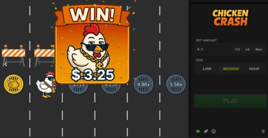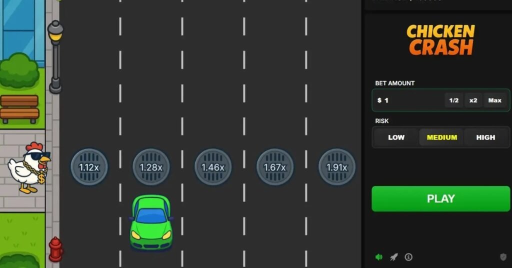 Chicken Crash to propozycja dla osób poszukujących mieszanki adrenaliny i błyskawicznych zakładów. Rozgrywka osadzona została na chaotycznej drodze, gdzie gracz steruje odważnym kurczakiem, który próbuje dostać się na drugą stronę. Każdy kolejny ruch zwiększa potencjalny mnożnik, lecz jednocześnie rośnie ryzyko utraty stawki w przypadku kolizji z przeszkodą.